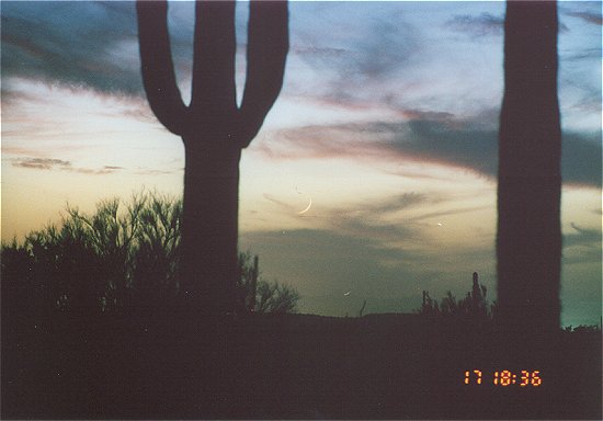Scottsdale, AZ - 17 Oct 2001 - Moon age 30h 13m, Elevation 2.3 degrees